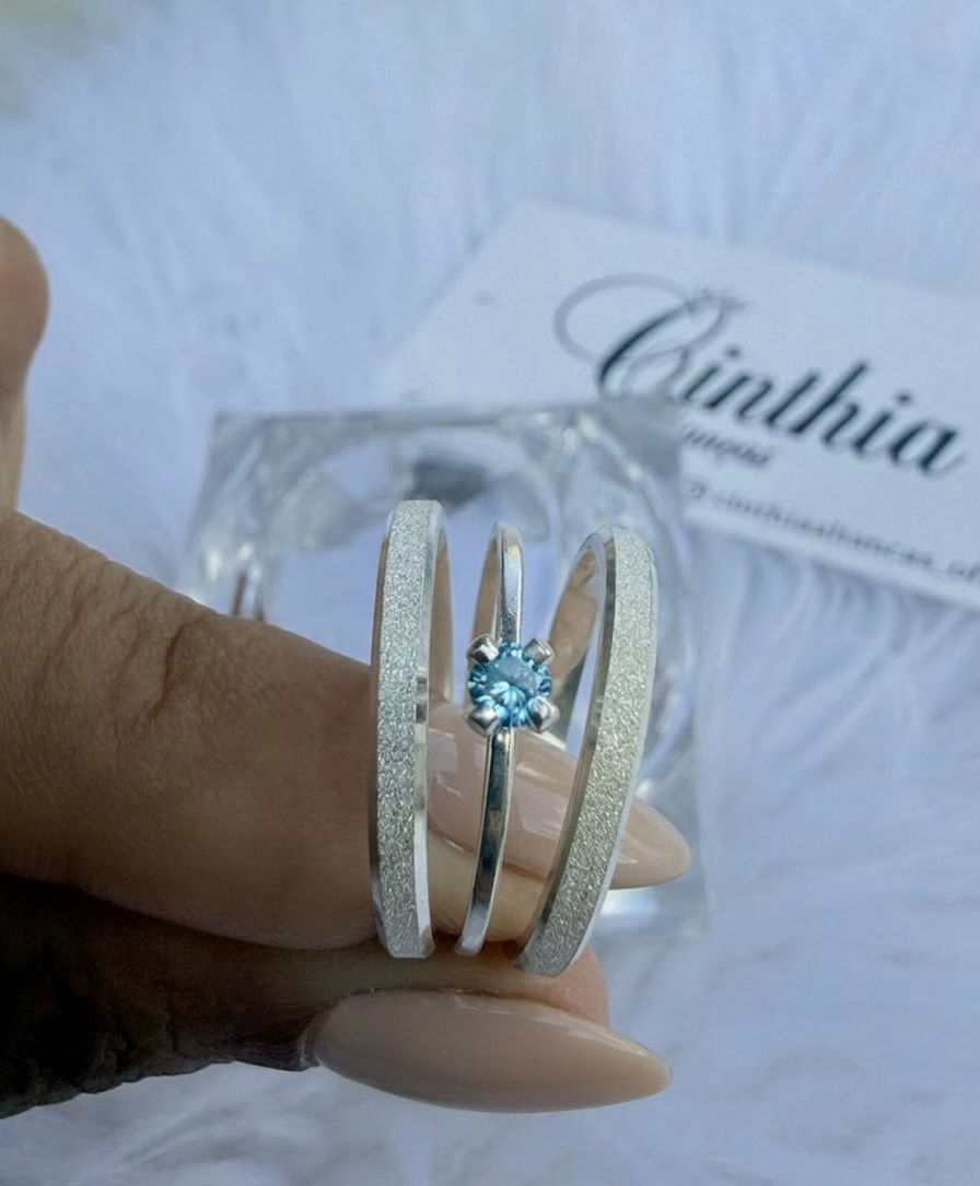 Alianças Livia Azul + Solitario trança